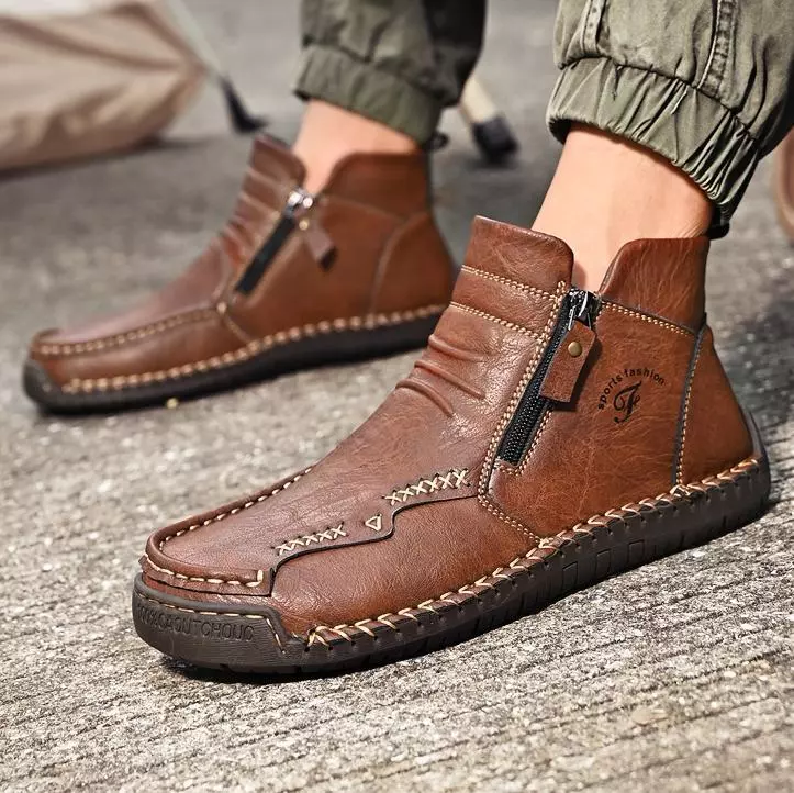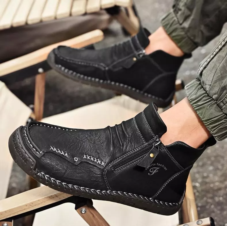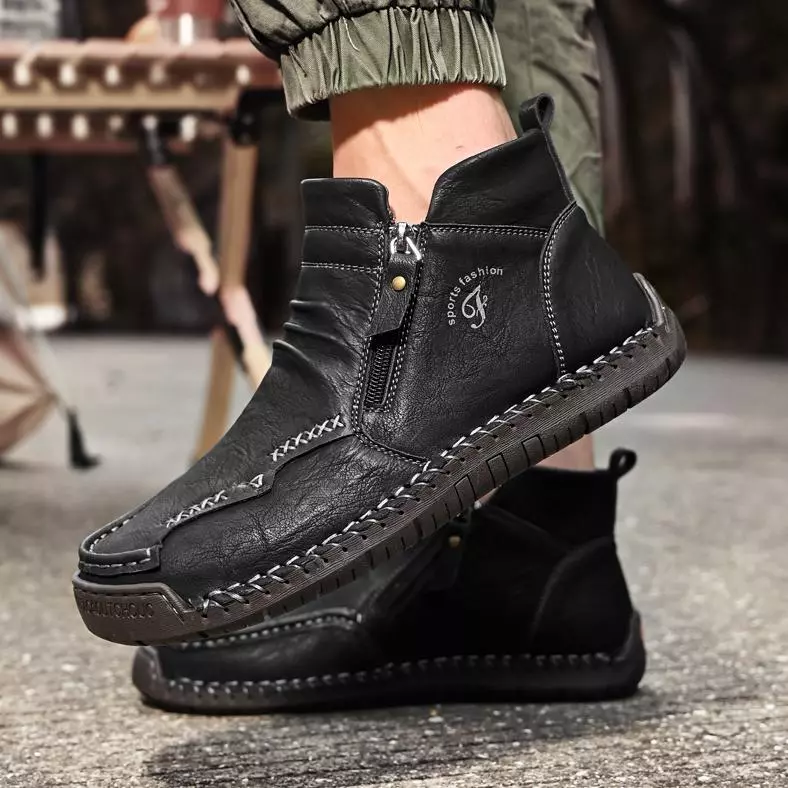 Bottes en cuir de vache cousues à la main pour hommes, confortables, imperméables et antidérapantes