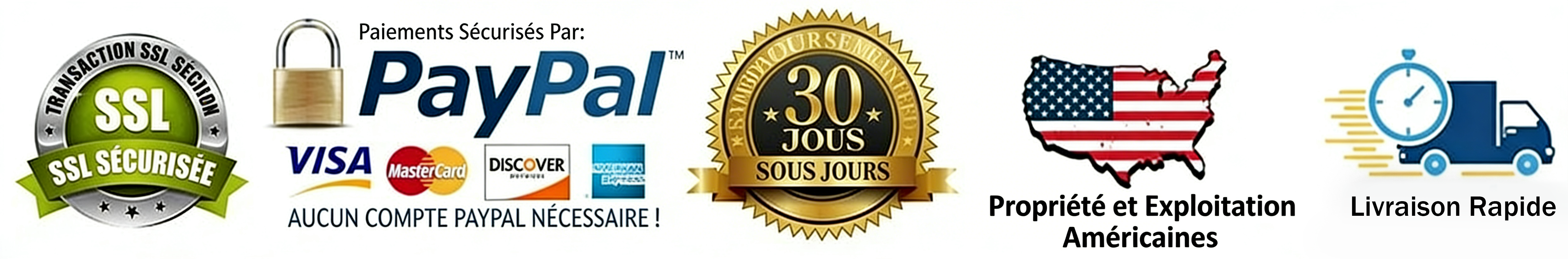 Le processus de paiement est garanti 100 % sûr et sécurisé avec Visa, MasterCard, American Express, Discover, Apple Pay ou PayPal. Satisfaction 100 % garantie sur chaque commande.